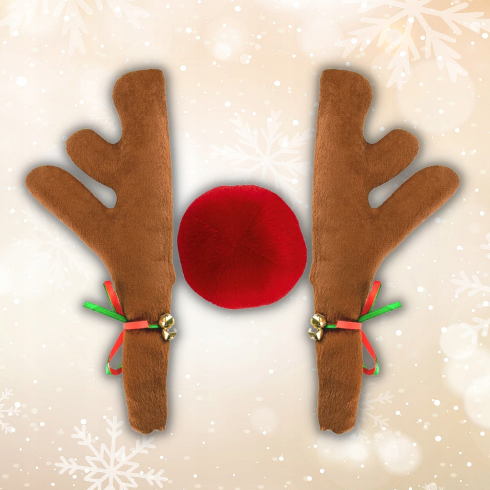 Zestaw Świąteczna Dekoracja Samochodowa – Rogi Renifera + Nos – Ozdoba Auto na Boże Narodzenie